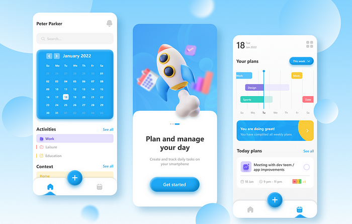 클레이모피즘은 부드러운 접근 방식을 취하며, 일반적으로 비슷한 스타일의 그래픽과 함께 부드러운 그림자와 차분한 색상을 사용하여 UI 요소에 3D의 둥글고 장난기 가득한 느낌을 줍니다.