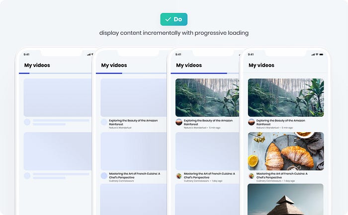 점진적 로딩은 사용자가 전체 페이지가 로드될 때까지 기다리게 하는 대신 필수 요소부터 우선순위를 정하여 콘텐츠를 점진적으로 표시할 수 있습니다. 이 기술은 사용자가 페이지와 더 빨리 상호 작용을 시작할 수 있으므로 체감 성능을 향상시키고 체감 대기 시간을 줄여줍니다. 프로그레시브 로딩은 더욱 매력적인 경험을 제공할 뿐만 아니라 다양한 네트워크 조건을 수용하여 사용자가 지연 없이 웹사이트 또는 앱의 핵심 기능에 액세스하고 상호 작용할 수 있도록 보장합니다.