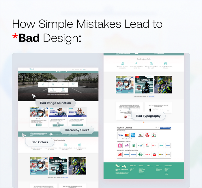 개선이 필요한 디자인은 무작위 이미지 선택, 색상 충돌, 혼란스러운 계층 구조, 잘못 디자인된 양식 등 잘못된 선택으로 인해 발생합니다. 이러한 결정은 사용자에게 혼란을 주고 실망스러운 경험을 선사할 수 있습니다.