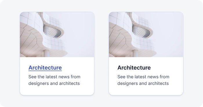 일부 인터랙티브 요소에는 이미 인터랙티브임을 나타내는 시각적 단서가 있으므로 모든 인터랙티브 요소에 색상을 추가할 필요는 없습니다. 예를 들어, 다음 예시의 카드는 파란색 링크가 있든 없든 여전히 인터랙티브한 느낌을 줍니다.