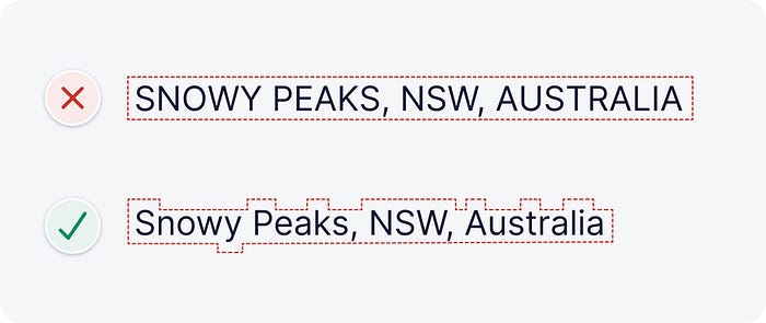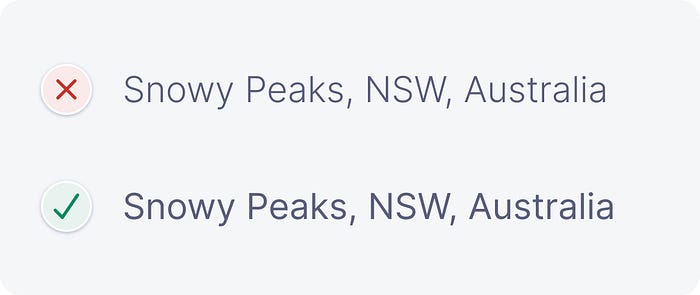 이 예제에서 위치 텍스트는 대문자를 사용합니다. 첫 단어와 고유명사(사람, 장소 또는 사물의 이름)만 대문자로 사용하는 문장 대소문자로 변경하면 가독성을 높이는 데 도움이 됩니다.