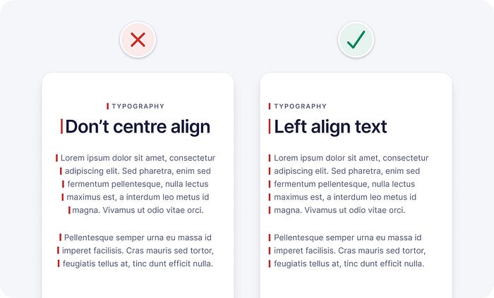 가운데 정렬은 제목이나 짧은 텍스트에는 적절할 수 있습니다. 짧은 경우에는 빠르게 읽을 수 있기 때문입니다. 하지만 본문이 길어질 경우, 줄의 시작 위치가 계속 바뀌어 읽기가 어려워집니다. 각 줄의 시작점을 찾기 위해 눈이 더 많은 노력을 해야 하기 때문입니다.