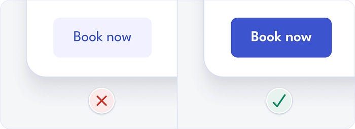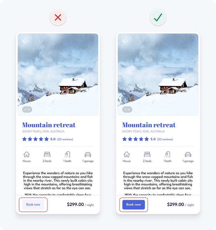 기본 동작은 일반적으로 인터페이스에서 가장 눈에 띄는 요소여야 합니다. 고대비 배경색과 굵은 글꼴 굵기를 사용하면 이를 달성하는 데 도움이 됩니다. 이렇게 하면 나중에 살펴볼 저대비 버튼의 접근성 문제도 해결됩니다.