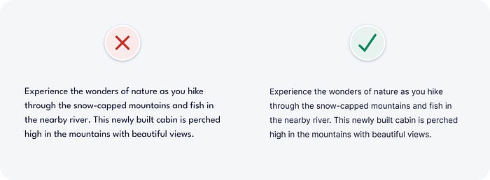 이제 시각적 계층 구조가 더 명확해졌지만 여전히 개선의 여지가 있습니다. 예를 들어 본문 텍스트 블록은 중요도에 비해 여전히 너무 눈에 잘 띄고 있습니다. 시각적 계층 구조를 수정하는 데 도움이 될 몇 가지 간단한 타이포그래피 가이드라인을 살펴볼께요.