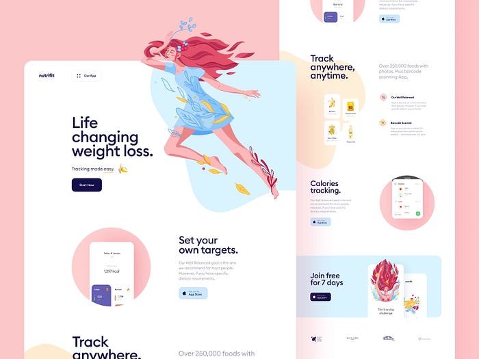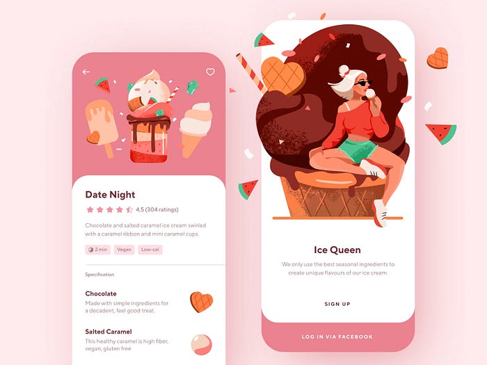분홍색은 양육, 연민, 따뜻함의 감정을 불러일으킬 수 있습니다. 분홍색은 화장품, 웰빙, 라이프스타일과 관련된 웹사이트, 앱, 브랜딩에서 자주 볼 수 있습니다.