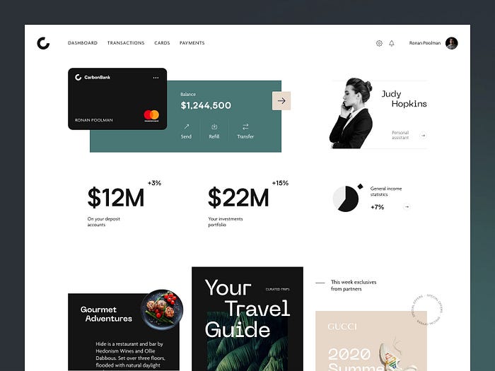 회색은 다른 요소를 돋보이게 하고 깔끔하고 현대적인 미학을 제공하기 때문에 UI 디자인에서 배경 또는 기본 색상으로 일반적으로 사용됩니다.