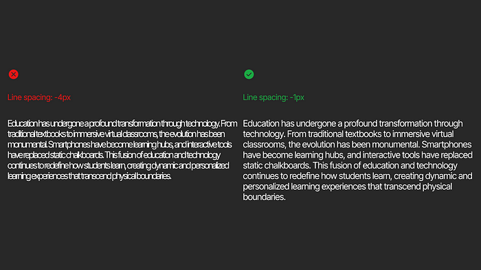 줄 높이가 너무 높으면 텍스트가 단절되어 따라가기 어려워 보일 수 있습니다.