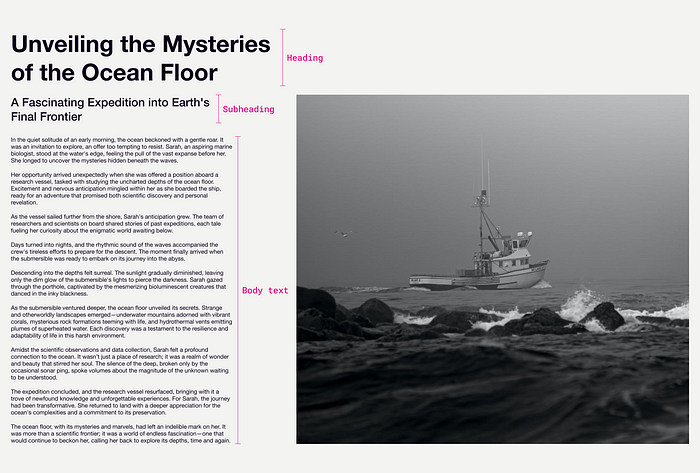 제목보다는 작지만 본문 텍스트보다는 큰 텍스트로, 콘텐츠를 구분하는 데 사용됩니다.