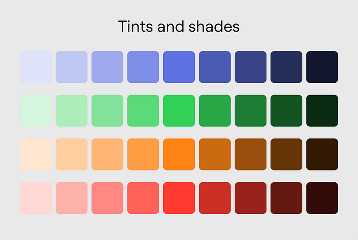 3. 선택한 모든 색상의 틴트 및 음영 만들기