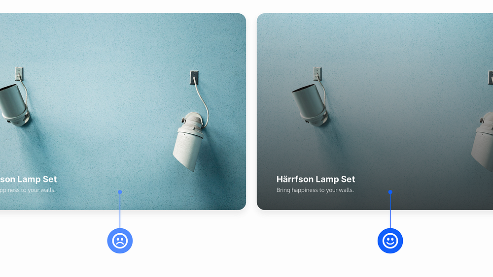 텍스트가 이미지 위에 위치할 경우, 전체 이미지에 오버레이를 적용하거나 더 은은한 방식으로 상단 또는 하단에서 점진적으로 적용되는 그라데이션 오버레이를 활용해 텍스트와 이미지 간의 간단한 대비를 만들어낼 수 있습니다.