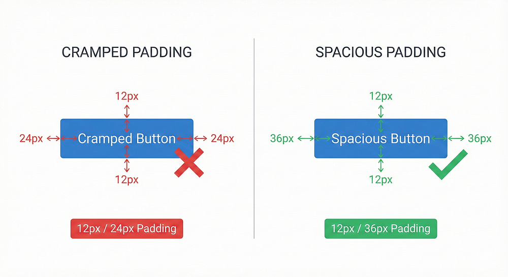 수직 패딩에 비해 수평 패딩을 넓게 설정하는 목적은 버튼 내부의 답답함을 해소하고 디자인의 의도성을 명확히 전달하기 위함입니다. 이러한 여백 조절은 사용자에게 시각적인 편안함을 제공하며, 단순한 기본 설정을 넘어 정교하게 설계된 인터페이스라는 인상을 심어줍니다.