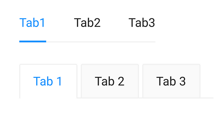 탭에는 항상 두 개 이상의 항목이 포함되며 한 번에 하나의 탭만 활성화됩니다. 탭의 시각적 스타일은 다양할 수 있지만 다음은 가장 일반적인 두 가지 스타일입니다.