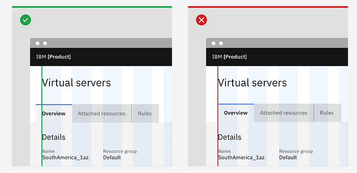 일반적으로 줄 탭 및 포함된 탭의 첫 번째 레이블은 그리드 및 아래 텍스트와 정렬됩니다.