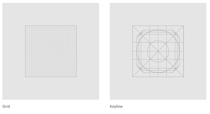 복잡한 아이콘을 디자인할 때는 키라인(키 도형)을 사용하세요.