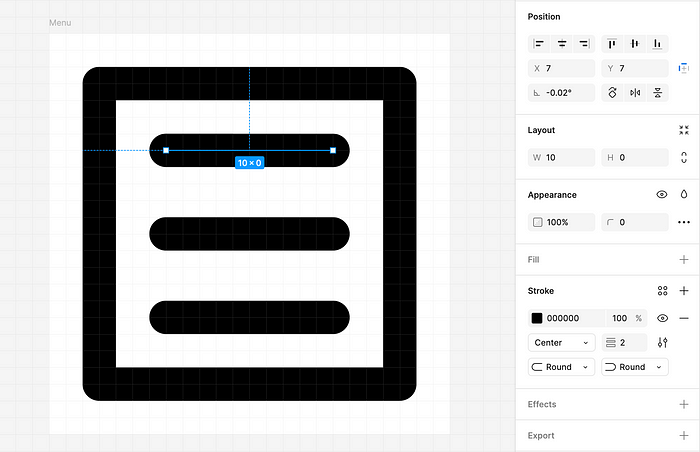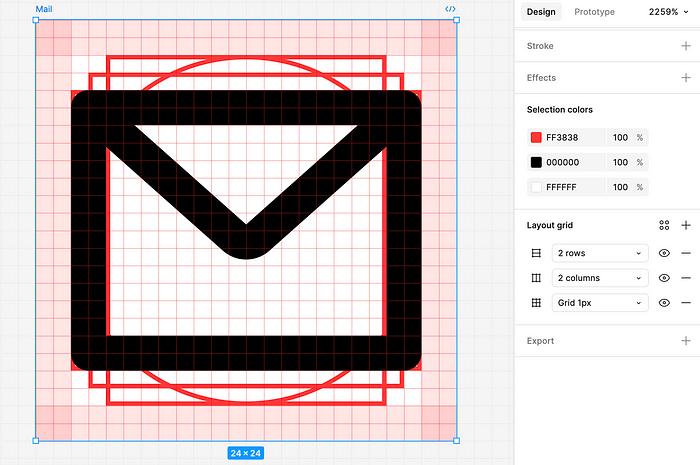 광학 격자의 경우 수직 및 수평 패딩 = 스트로크 가중치를 추가합니다. 이렇게 하면 라이브 영역을 만들 수 있습니다. 아이콘 콘텐츠는 라이브 영역 내부에 있어야 합니다.