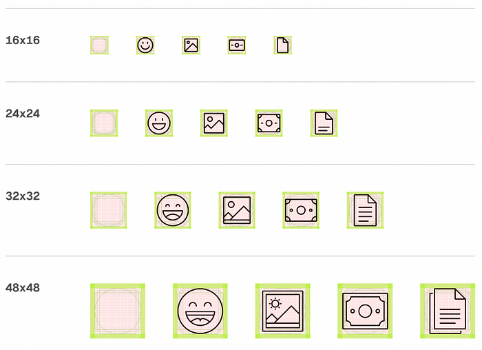 그리드의 기본 단위로 8픽셀을 사용하세요. 이렇게 하면 다양한 매체에 대해 생성하는 아이콘의 일관성과 균형을 유지할 수 있습니다.