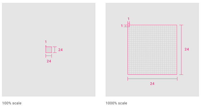 픽셀 단위의 완벽한 정확도를 위해 100% 비율로 볼 수 있는 아이콘 만들기