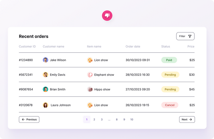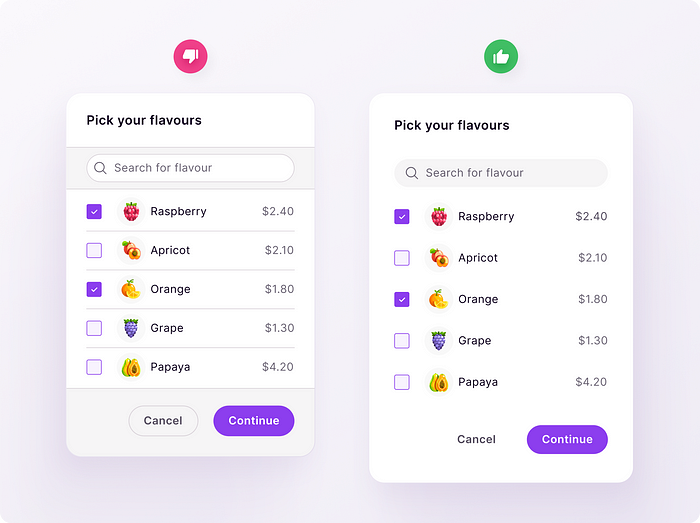 테두리와 배경색은 디자인에 많은 것을 더할 수 있지만, 지나치지 않는 것이 중요합니다. 테두리를 과도하게 사용하면 인터페이스가 복잡해지고 바쁘거나 혼란스러워 보이거나 구식으로 보일 수 있습니다. 과도한 선과 색상은 콘텐츠 자체를 방해하여 UI를 지나치게 복잡하고 탐색하기 어렵게 만들 수 있습니다.