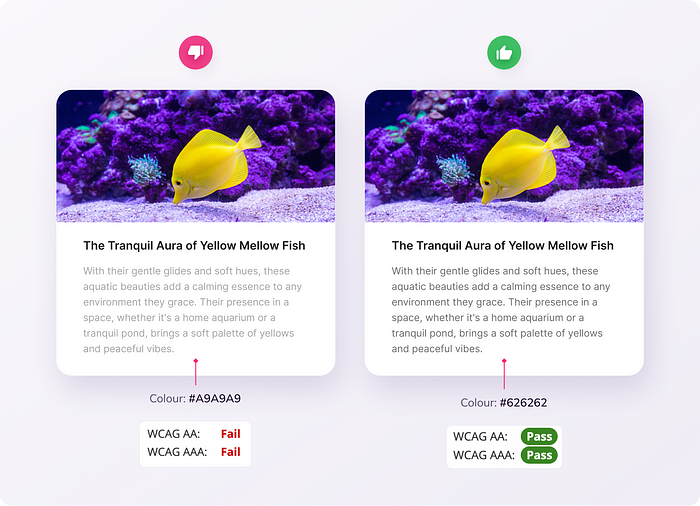 디자이너들은 미니멀리즘이나 미적 매력이라는 명목으로 밝은 회색 텍스트를 선택하기도 합니다. 세련되고 현대적으로 보일 수 있지만, 특히 시력이 좋지 않은 사용자에게는 읽기 어려울 수 있습니다.