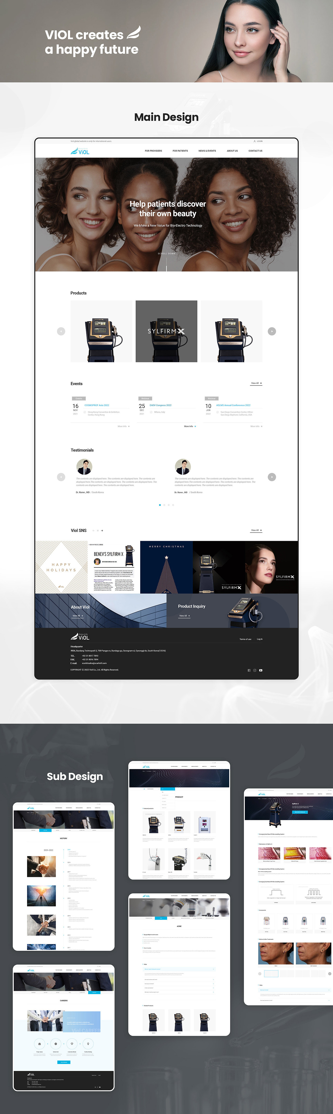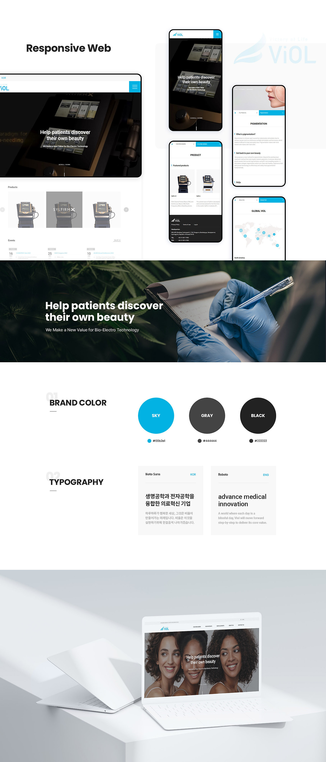 비올의 공식 기업 홈페이지를 다양한 기기에서 이용이 가능하도록 반응형 홈페이지로 제작하였으며 사용자가 온전히 정보에 집중할 수 있는 레이아웃과 디자인을 적용하였습니다. 기업의 전문성과 브랜드 아이덴티티를 반영한 스타일링을 적용하였으며 엔엑스웹의 자체제작 CMS를 기반으로 자체적인 유지보수와 관리가 가능하도록 구현하였습니다.